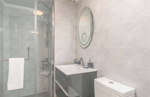 the bathroom exudes elegance, featuring contemporary fixtures and a tasteful color palette Whether it's a quick morning routine or a soothing evening unwind, this private oasis offers the perfect setting for relaxation.