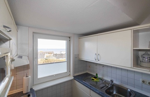 pretty apartment with a fantastic panoramic view of both seas and the town of hörnum Set up for 4 people. The apartment is offered as a non-smoking apartment. Unfortunately we cannot accept pets here. The apartment has a separate small kitchen, a living room that is equipped with a dining table for 4 people. In the living room there is also a wall bed (140 x 190cm). An adjoining room with 2 single beds offers sleeping accommodation for the 3rd and 4th Person. The shower room is inside. The separate small kitchen is equipped with a 2-burner stove and microwave. in parking space is available in front of the house. The seating in front of the house can be shared.