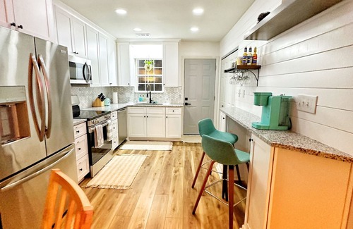 step into vacation bliss with our single story 2-bedroom, 2-full bath hideaway with garage parking, and a fully fenced in back yard with an outdoor grill Just a seashell's throw away from the famous Marshwalk! 🍤 Indulge in seafood delights, vibrant shopping, and evenings by the water—all just steps from your door.✨