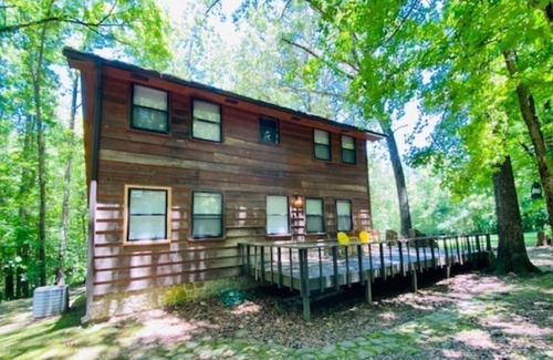 Secluded home nestled in trees. This home offers 3 bedrooms, 2 bathrooms with a full kitchen. Living room is separate from the kitchen offering privacy. There are board games, lawn chairs, and a fire pit available to use for a relaxing weekend. Back deck overlooks the woods and has a big yard for kids to play in. There are 16 acres available on the property to explore. Very private but only a few miles to downtown Mtn. View, Blanchard Springs and the famous White River..