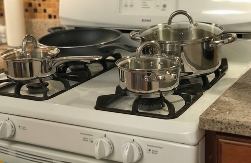 full eat-in kitchen with gas stove, oven, refrigerator, dishwasher, and microwave All cooking essentials, utensils, pots, and pans. pantry food