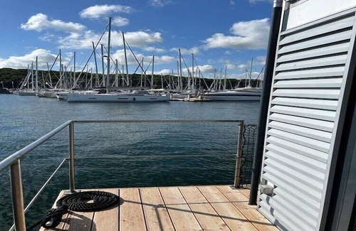 In Laboe, the houseboat is located in the modern Baltic Bay Marina at the mouth of the Kiel Fjord to the Baltic Sea. On these floating berths you can relax wonderfully and watch the harbor life. From the upper sun deck (25 sqm) you also have a wonderful view of the Kiel Fjord with all the large ships, sailing yachts and traditional sailing ships coming in and out. There is a restaurant directly in the marina, and many other restaurants, ice cream cafes, bars and quaint pubs are within walking distance in Laboe. Enjoy the special atmosphere around the harbor and stroll along the paths along the river. The fine sandy beach in the town is not far away and the area offers the best conditions for a relaxing vacation and all kinds of water sports. Highlights included: final cleaning, all consumption-dependent energy costs, laundry package, parking space, WiFi The town of Laboe is not only very beautiful and prominently located at the mouth of the Kiel Fjord, Laboe is very easy to reach both by car and public transport. note: pets are not allowed!