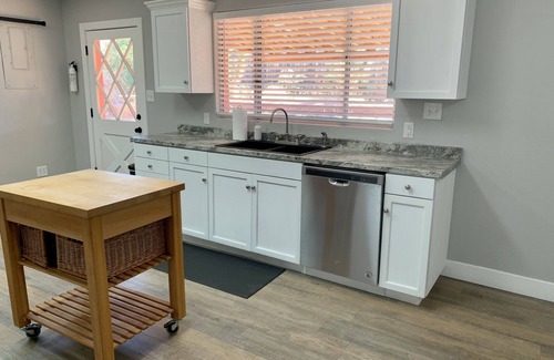 everything is brand new! large, comfortable family home with fast wifi, lots of common area space and a fenced back yard with covered patio Within walking distance of restaurants, shops and tourist activities.