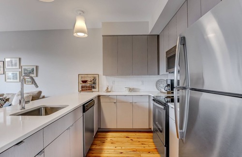 this one-bedroom, one bath loft offers you all the comforts of home wrapped up in a simply elegant package It features a dedicated parking space and an optional elevator for easy accessibility. Like all of our Savannah vacation homes, the flat boasts a full kitchen stocked with dishes and cookware, bed linens and towels plus a washer-dryer, so you can pack light.