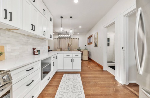 Welcome to your perfect getaway! Our beautifully renovated 5-bedroom, 3.5-bathroom home, featured as a top place to stay in Wichita, boasts unbeatable amenities and a prime location. Enjoy a luxurious outdoor oasis with cozy seating, entertainment, and a stunning heated saltwater pool and spa. Just steps away, explore family-friendly coffee shops, boutiques, restaurants, and outdoor eateries. For group getaways, nearby nightlife includes lounges, bars, and more. Pool can be heated.