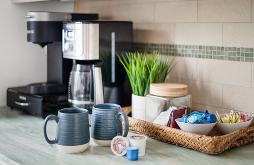offers a fully equipped chef's kitchen to make homemade meals with state-of-the-art wolf appliances, pots/pans/kitchenware, and complimentary local organic coffee, teas, spices