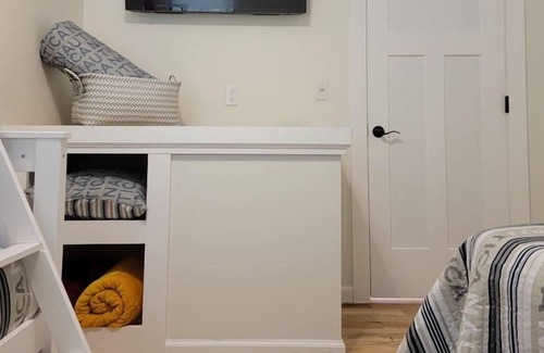 welcome to herons nest boutique cottages next to the beautiful paw paw lake This charming property is 1 of 6 super cute cottages, all new and tastefully furnished. Hickory hardwood floors, tiled baths and private deck w/grill. The property is complete with a firepit, 2 pergolas/swing, sand play court, parking and ACROSS THE STREET FROM PAW PAW LAKE. you can swim, launch your kayak or paddle board nearby!