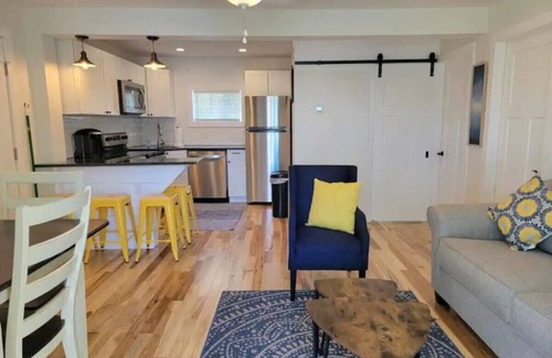 Welcome to “The Up” Cottage one of 6 charming cottages, each newly-renovated and thoughtfully decorated for your comfort. Step inside to discover beautiful hickory hardwood floors and modern, tiled bathrooms, as well as your own private deck with a grill for outdoor dining. “The Up” cottage is a 2 bedroom 2 bathroom cottage featuring Queen Size Master Bedroom, Twin and Twin over Full bunks in the additional bedroom. Our living area has a queen size sofa sleeper. This unit with comfortably sleep 8. Stunning views of Paw Paw Lake from inside the living room or from the deck.