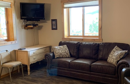 Cozy apartment with a secluded deck. Two bedrooms each with a queen bed. Living room hide a bed couch offers additional sleeping arrangements. Good size kitchen with plenty of seating Laundry room and large bathroom. Large deck to enjoy your morning coffee and enjoy sunrises and sunsets. A view of the Teddy Roosevelt Arch, town of Gardiner , and Electric Peak in Yellowstone Park. Short distance to the North Entrance of Yellowstone National Park. Perfect for a couple or two or small family..