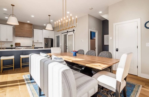 we have an amazing dining room with comfortable seating for the whole crew! relax on the 15 foot couch in the basement for game or movie night!