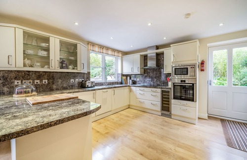 amenities: gas central heating Electric oven and ceramic hob, microwave, fridge, freezer, wine cooler, washing machine, dishwasher, 5 x TVs with Freeview (plus Sky Sports and Sky Movies in sitting area), additional TV for DVD use only (no aerial), Blu-ray, 2 x DVD, CD/radio, iPod dock, WiFi, selection of books and games. Fuel and power inc. in rent. Bed linen and towels inc. in rent. Cot available and travel cot and high chair on request. Off road parking for 3 cars. Paved patio with furniture. Sorry, no pets and no smoking. Shop 2 mins walk, pub 5 mins walk. Note: WiFi only available in open plan living area. Note: There are 5 garden steps that may be slippery when wet, please ensure children are supervised.
