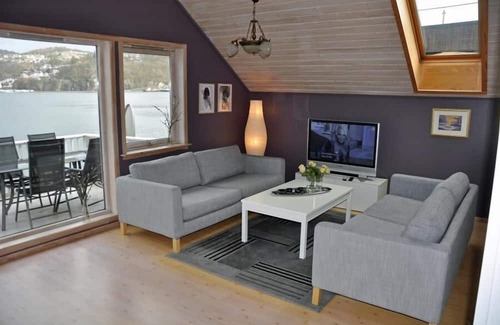 Holiday apartment "Fagerstrand 1", in Flekkefjord, southern Norway, in a beautiful location directly on the water, 4-6 persons, open living-dining area, 2 bedrooms, 1 loft with double mattress, 1 bathroom, Internet, own small veranda with access t... | Apartment in Flekkefjord am Flekkefjorden