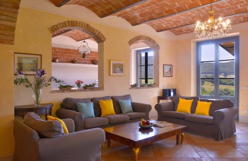 thanks to its position, the villa enjoys a magnificent view of the surrounding countryside Its strategic position also makes it easy to reach the nearby wellness and spa centres of the Montescudaio area, as well as to make excursions to beautiful art cities such as Pisa, Lucca, Siena, Florence or the splendid Etruscan ruins of places like Populonia.