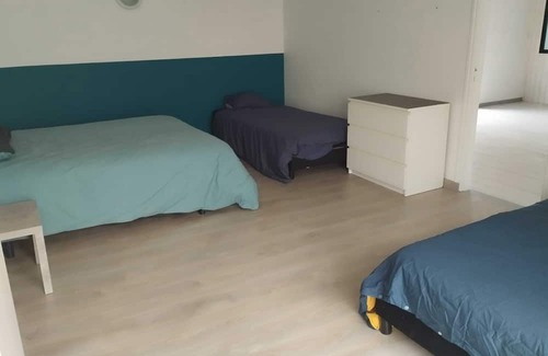 the house has 2 comfortable bedrooms, 1 including 2 single beds and a double bed and a private bathroom with a shower and 1 including 2 single beds and a double bed The bathroom is fitted with a shower and a toilet.