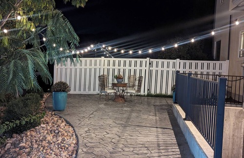 enjoy modern amenities including wifi, hair dryer, iron, ac, heating, soak tub, sonos speakers, govee lights to set the mood, along with your own washer and dryer, ensuring a hassle-free vacation BBQ on your exclusive patio while enjoying the valley views. For those seeking extra relaxation, optional amenities like a infrared sauna and an infrared red LED light bed sessions are available for an additional cost.