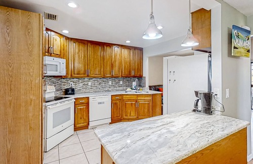 inside, you’ll find a refreshed, open space with modern updates and classic touches throughout the home The chef will love the full “walk-through” kitchen with ample cupboard room, and there’s room for everyone at mealtime with two dining tables to accommodate a full house. Relax on the plush sofas in the living room each evening while you stream the latest release on the large TV or curl up with a good book. The dedicated workspace will give you just the place to check in on your emails.