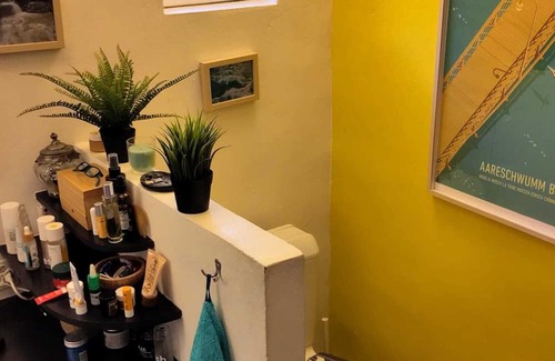 House with garden on the Aare. Open-plan living room incl. kitchen and bathroom. Upstairs are the two bedrooms with double beds. The office is in the annex. The garden/meadow is open to the neighbours. They also help us with the Airbnb management. In summer the Aare invites you to swim. Close to the city and a recreational zone. Friendly young families to the left and right..