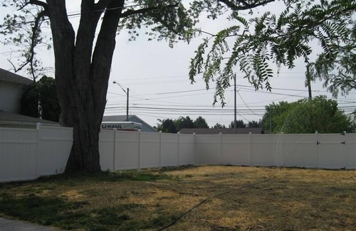 the back yard has a large stamped patio, a private-enclosed outdoor shower and huge fenced-in lot with your own fire pit lots of privacy and space!!