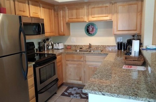 this condo features on-site exercise room, swimming pool & spa (year around), fully equipped kitchens, granite countertops, full-sized washer & dryer and more