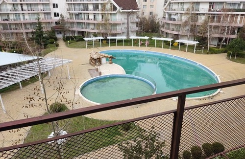 Yes, this Sunny Beach apartment has a swimming pool. Check the Facility Overview section for details about the pool and other available facilities.
