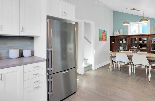 3 Bedroom Beach house, in the heart of downtown Capitola. Beach, shops, wine bars, and restaurants just steps away. Rent a surf board a few doors down, and walk 2 very short blocks to the beach! House is hip, comfy, and a great layout for families. Private, outdoor patio is perfect for entertaining, with comfortable lounge seating, a succulent garden, grill and dining table.