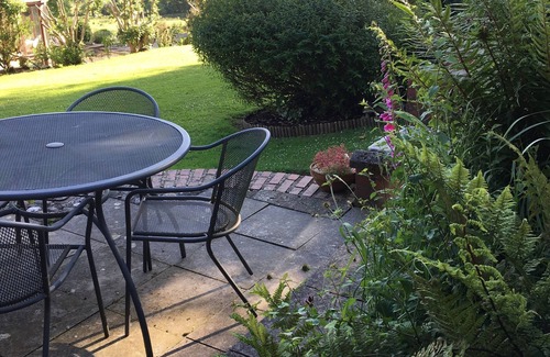 the cottage has it's own private garden, with table, chairs and patio area with stunning views over the countryside and open fields