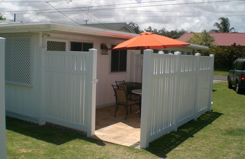 this charming hawaiiana style studio is perfect for two Located on a larger corner lot just 5 miles from the bustling town of Kailua and just a short stroll to the 5 mile stretch of white sandy beach in Waimanalo. This studio has a queen size pillow top bed, kitchenette with intimate dining for 2, full bath with tub and a private outdoor patio for alfresco dining. air-conditioned or use the ceiling fan and let the ocean breezes blow in!