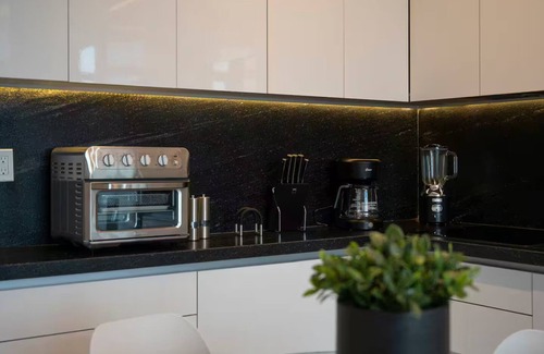 this 1-bedroom, 1-bathroom rental features a bbq grill and air conditioning Connect to the WiFi, or get cozy in front of the Smart TV. Bathroom amenities include a hair dryer, towels, and toilet paper. The kitchen is equipped with a refrigerator, as well as a coffee maker, a microwave, and cookware. And because there's a washer and dryer, you can go a bit lighter on your packing. Other amenities include bed sheets and an ironing board.