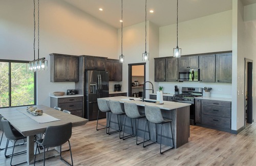 step inside and experience the open-concept living space, designed for both relaxation and entertainment The fully equipped kitchen and cozy living area flow seamlessly, making it perfect for family gatherings or a fun weekend with friends. Large windows invite in plenty of natural light and frame the gorgeous scenery.