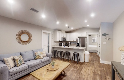 upon entry, you'll be met with a bright interior and a cozy atmosphere throughout the well-appointed and airy living spaces This home is divided into three separate living spaces, perfect for family groups for a reunion or retreat. Each living room boasts a comfortable sofa and a large TV for streaming movie marathons with your loved ones. Each galley-style kitchen is equipped with stainless steel appliances, ample cupboard room, and a breakfast bar. Comfortable beds in spacious bedrooms ensure that everyone will receive a wonderful night's rest from the day's adventures, with luxurious linens, ceiling fans, and natural light to help you get the best night's sleep. Enjoy the ultimate convenience of a washer/dryer in each unit.