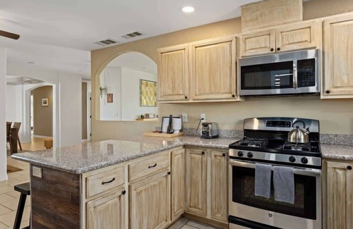 located minutes from the famed joshua tree national park, our 3 bdrm, 3 bath home is your perfect desert getaway! tastefully decorated to match the lush setting, our spacious and open house has everything you need to have fun with the whole group go for a hike in the gorgeous national park, or visit the local shops and restaurants that downtown joshua tree has to offer!!