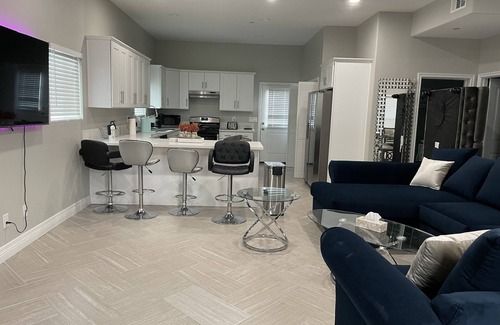 Unwind in our new, luxurious house! The vast, stunning property offers exceptional convenience with gated privacy. walk to nearby restaurants, shops, and transportation hubs