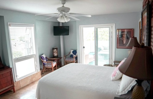 we are surrounded by palm trees waving in the trade winds, birds singing in the trees shading the property, many different hues of blue in the water and sky coloring the landscape Each morning is a new canvas already painted for you to enjoy.