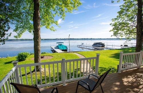 this lake front property is perfect for your next getaway! located directly on shawano lake, this home is perfect for a swimming and boating weekend Swan Acre boat landing is conveniently located just 1 mile down the road. This 3-bedroom home sleeps 10 people and has 3 full size bathrooms. The large kitchen is perfect for making meals and has plenty of seating for everyone.