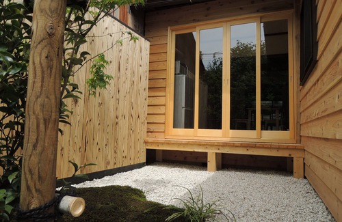 as you step into the house, your feet will feel beautiful tatami mats as your gaze is drawn to the private garden behind the house In the living room there is a traditional "kotatsu" sitting table that has a heater in the winter months. Relaxing at the western-style kitchen table in the dining room viewing the garden will refresh any tired traveler. The kitchen is large enough to enjoy and prepare food for even large groups, with coffee and tea available at the house. The bath area as well is great for families with kids.