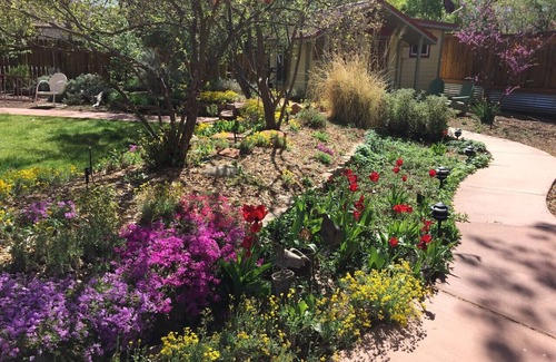 kenzies cottage is located on an artsy off-beat street in the middle of town While you can walk to all the restaurants and shops on Main Street, you also feel like you are in a secluded nook! At the end of the street is located our community space where we host yoga, silent discos, music jams, voice circles and special workshops. See our IG hearthspacemoab for our events and calendar.