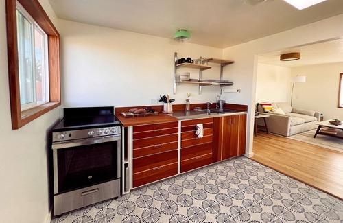 this former horse ranch was home to trick pony trainers until just recently Come walk the land and take in the sites of this bright and airy mid-century home. We have high speed starlink internet for streaming your favorite shows (most places in the JT have super slow internet). Right at the base of Goat Mountain, come watch the sunrise and forget all that drama. Bring your pet; they deserve a break, too..