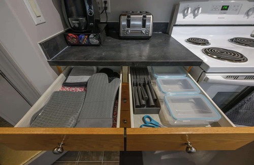 complementary amenities: we provide a starter pack of essentials, including coffee, salt/pepper, sugar, paper towels, toilet paper, dish soap, hand soap and other basic essentials to get you started This covers most stays, but longer stays may require additional supplies, which will be the guest's responsibility to restock.