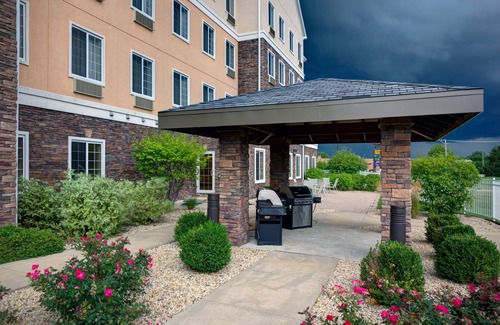 in the kitchen you'll find a stove, a microwave, a dishwasher, a refrigerator, cooking utensils, and dishes Start your day with a cup of coffee, fresh from our in-suite coffee machine. In the morning, enjoy a complimentary breakfast buffet which features a variety of delicious options. You can grill up a meal in the shared BBQ area.