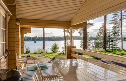 a spacious log villa on a peninsula