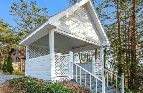 the downstairs bedroom has a queen size bed The room is small so there is a closet in the hallway to hang clothes and a dresser under the stairs. Upstairs is a loft with a full size bed and two large nightstands with doors and shelves to hold your clothes. The cabin is not big, but it is beautiful and the outside balcony is where you are going to want to spend your time hanging out and eating overlooking the mountains and valley. The pictures you will see of the views are not doctored up, they are actual pictures taken by myself and guests. The kitchen is full size with a fridge, stove/oven, granite counter tops and new cabinets. You have everything you need including a toaster, crock pot, and pots and pans.There is a gazebo and outside chapel on the property also with beautiful views of the mountains. This area can be rented as a wedding venue, but it has to be pre-approved first by Kathryn. There are 8 cabins on the 12 acres, but only 4 on the street that your cabin is on. While you have your own bench swing outside of Gnome Sweet Gnome, there is also a bench swing across from the cabin with a beautiful view of Pigeon Forge and the mountains, a charcoal grill and picnic tables. On the property, behind Tanner Manor Lodge (cabin #1231) there is a trail that leads to a community Firepit (bring your own wood) and there's a hose there to put it out after using it.