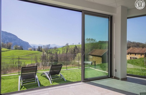Gite located on the ground floor, on one level: living room-kitchen opening onto a terrace, a bedroom (1 double bed 160 x 200 cm) without opening to the outside but second day window overlooking the living room, a bathroom (walk-in shower and WC). Access to the washing machine only in summer (located on the ground floor outside under shelter). Wellness area included in the stay (1h30 per day) including a swimming spa with shower and WC, elliptical trainer). Privilege Card for discounts on certain activities in the area. A cozy nest for 2 people with a terrace on 2 levels, part of which is sheltered, offering an exceptional and unobstructed view. Sheets and towels are included; the bed is made upon your arrival. Bicycles can be stored in a common and closed room. For your well-being, let yourself be tempted by the counter-current swimming spa and its panoramic terrace..