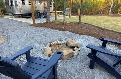 Lady Mae is a charming 1 bedroom Airstream 27FB International. Inside, you'll find 1 queen bed, 1 full bed, and 1 twin bed, perfect for a terrific night's sleep. With heating and AC, you'll stay comfortable no matter the weather. Secluded in the back of 10 acre lot. 'Golf cart able' to Lake Murray and a marine with boat rentals..