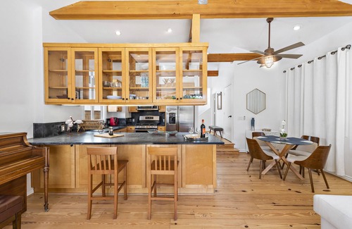 Vaulted wood-beamed ceilings greet you the moment you walk into this charming beach cottage. Appointed with colorful coastal accents throughout the home, you are instantly drawn to the beach lifestyle and are ready to experience all of the beauty and adventure that Laguna Beach has to offer. From the light and bright living room, soak in the afternoon sun through the West-facing tall, double French doors. You are lead to a private, enclosed and beautifully landscaped backyard, where you can sit and enjoy your coffee or cocktail on the back deck. Both bedrooms are on the second level, each with their own bath. Forced air conditioning and heat ensures you are comfortable in summer and winter months. Free wi-fi and space for remote work and learning is offered. Includes beach chairs, water sports equipment including kayaks and boogie boards. This charming beach cottage is located in the HIP District just steps to the beach and unique shopping and dining. Enjoy easy access to Coast Highway through the back gate. Leave your car in the garage and walk everywhere. A short stroll to the Village or take the free trolly. While in the Village, enjoy the day at Main Beach, exploring art galleries, Heisler Park, The Sawdust Festival and Festival of the Arts and Pageant of the Masters. Your days and nights will be filled with nothing but relaxation and fun. NOTE FOR YOUR SAFETY, there are security cameras located at the exterior, above the front door, and at the exterior, above the garage, that records when it detects motion by persons or animals.