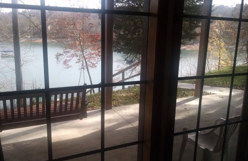 on year-round water with a large boat dock Located on beautiful Norris Lake with 800 miles of shoreline. Water front property. Kayaks, canoe and peddle boat. Straight access with steps to lake. Close to Sequoyha Marina by Water. On a quiet part of Norris Lake. Take Caryville exit off I-75 towards Big Creek 4.