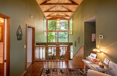 Located in the gated Bear Paw community this Lakefront House has all the comforts of home with cozy interior features easy access down to lake. Our 3 bedroom 2 Bath Home has an additional 2000 sq ft of open deck for entertaining and relaxing. Seasonal outdoor shower, grill, fire pit area, private dock, hammock and plenty of outdoor furniture.