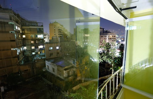 On the 4th floor of an elegantly round Art Deco building of the sixties located in a lively neighborhood, at a 10-minute walk from the trendy Badaro street, a space bathing in colored light traversing stained glass windows, belted with a garden holding up 12 meters above the ground: A vast living, including a kitchenette, and a flat screen TV. Two bedrooms, both giving on the suspended garden, with a enjoying view on the mountain: One with a queen size bed, plus a standard bed, the other with two standard beds. A bathroom with a bathtub. Free internet..