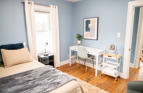 Welcome to your new home in the charming Northeast side of Grand Rapids, Michigan! This fully furnished 4-bedroom, 2-bathroom residence seamlessly blends old-world charm with modern amenities. Nestled close to Riverside Park and just a stone's throw away from downtown Grand Rapids, this property offers the perfect combination of tranquility and urban convenience.