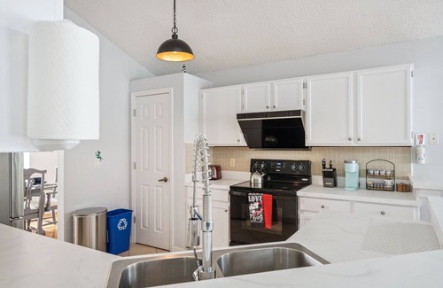 You will love our 2-floor home that is a short drive to all theme parks! Enjoy our large backyard pool with security fence, lanai, loungers, complimentary barbecue grill and pool toys too. Sip complementary coffee in the breakfast nook or seat your whole family around our large dining room table. Enjoy our full kitchen with everything you need to make a family meal: pots, pans, bowls, measuring cups, serving spoons, tongs, colander, cutting boards, the works. The primary suite is the only bedroom on the first floor, so send all the kids upstairs and enjoy the huge en suite bathroom that has a tub, separate shower, double vanity and walk in closet. There's a laundry room and don't worry about rainy days - enjoy the books, games and movies in the house. Enjoy the community playground or basketball court. All the comforts of a beautiful home and then some..