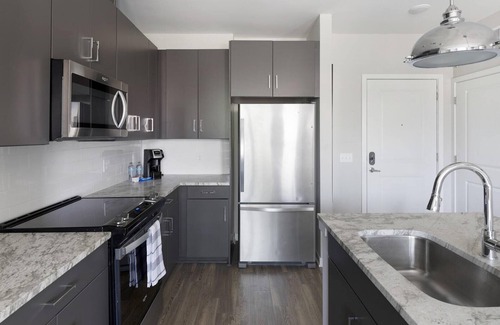our apartments are professionally cleaned, and maintained Amenities include an in-unit washer and dryer, iron, hygiene essentials, central heating, and elevator access. Guests can enjoy a fully equipped kitchen for meal preparation and a flat-screen television for entertainment. We also provide hangers, a hairdryer, shampoo, soap, and towels for your bed and bath needs. Our thoughtfully designed floor plans are finished with style making coming home a pleasure.